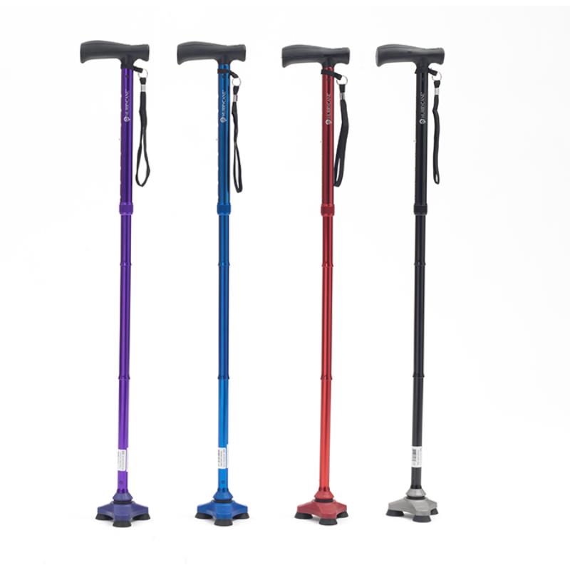 Walk with superior stability and balance. The HurryCane's unique 3-point pivoting base tackles any terrain and allows it to stand on its own when not in use.
