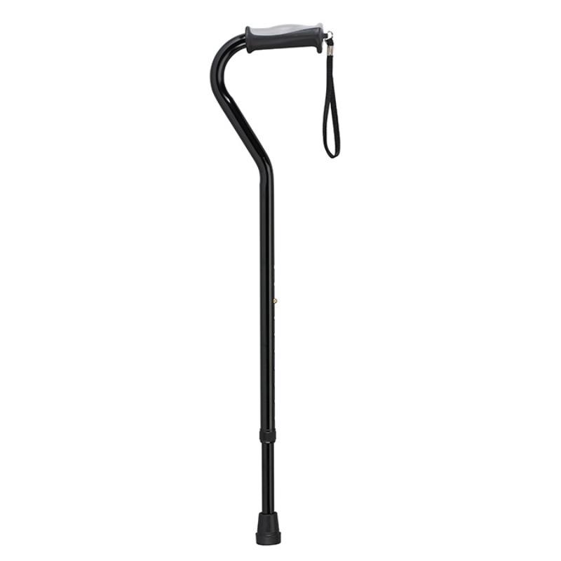 A sturdy aluminium cane with an offset soft gel grip handle for comfort. Comes with a wrist strap to prevent accidental drops.