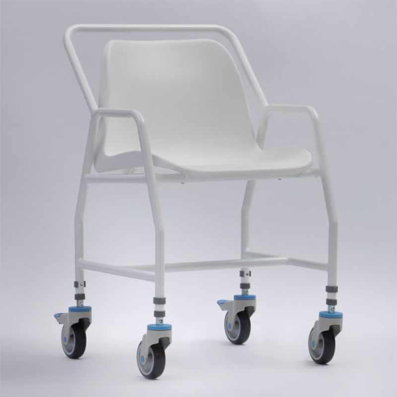 The Tilton Mobile Shower Chairs are adjustable height, mobile shower chairs with fixed armrests featuring a comfortable moulded plastic seat and a steel frame coated with hard wearing, peel resistant and anti-corrosive thermoplastic for longevity. Swivelling castors for manoeuvrability with either 2 or 4 brakes. There are models available with detachable arms for easy transfers.